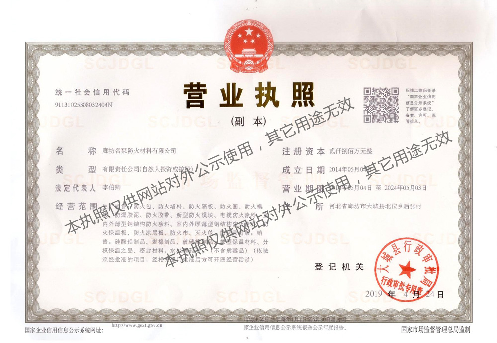 廊坊名泵防火材料有限公司是開(kāi)發(fā)、生產(chǎn)和經(jīng)營(yíng)防火材料的技術(shù)經(jīng)濟(jì)實(shí)體,擁有生產(chǎn)設(shè)施及設(shè)備。公司通過(guò)了ISO9001:2000質(zhì)量管理體系認(rèn)證,嚴(yán)格的質(zhì)量體系保證了我們產(chǎn)品的高質(zhì)量及高穩(wěn)定性。